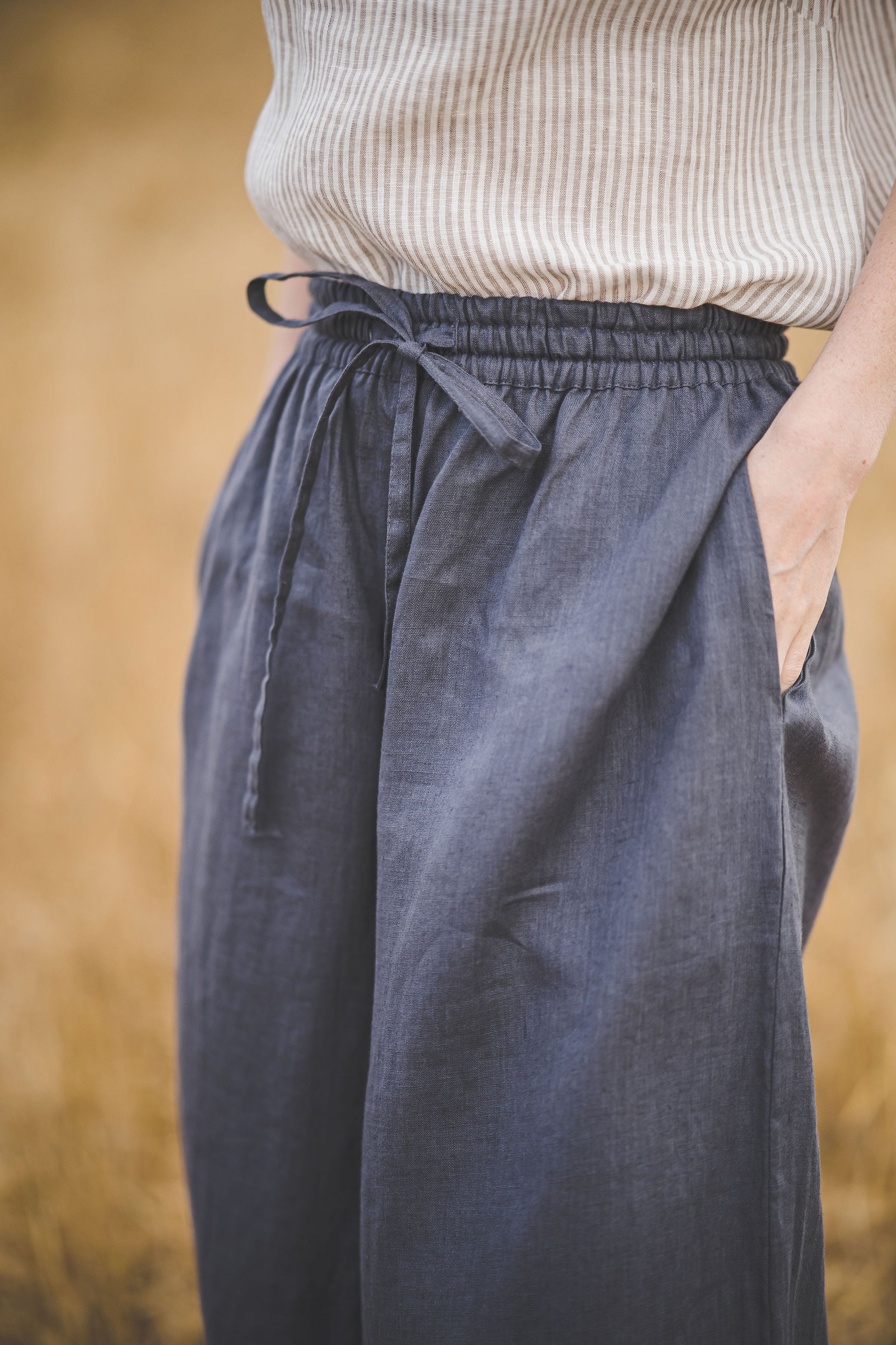 上質なリトアニアリネンで作った、涼やかなワイドパンツです。